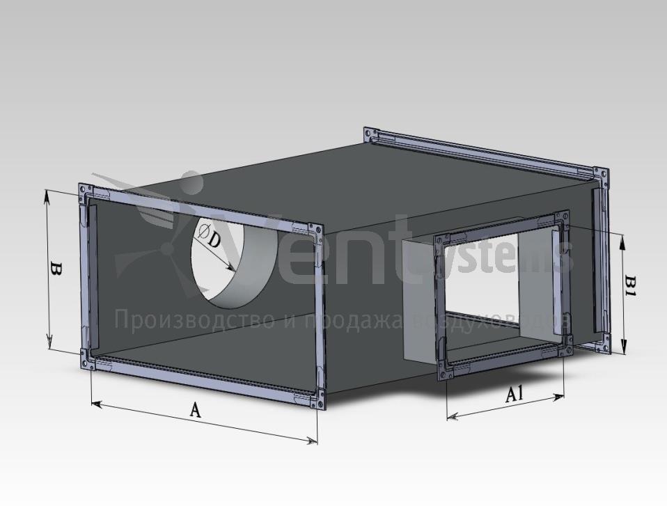 Прямоугольные воздуховоды Фасонные изделия Крестовина прямоугольного сечения с прямоугольной и круглой врезкой
